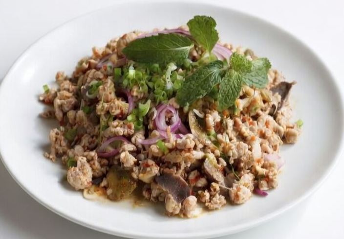 1 Larb Gai is a light Thai chicken salad made with lime, chili, and fresh herbs. It is high in lean protein, low in fat, and rich in antioxidants. This dish supports digestion and offers a fresh, flavorful, and healthy meal option.